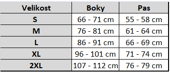 Tabulka velikostí: